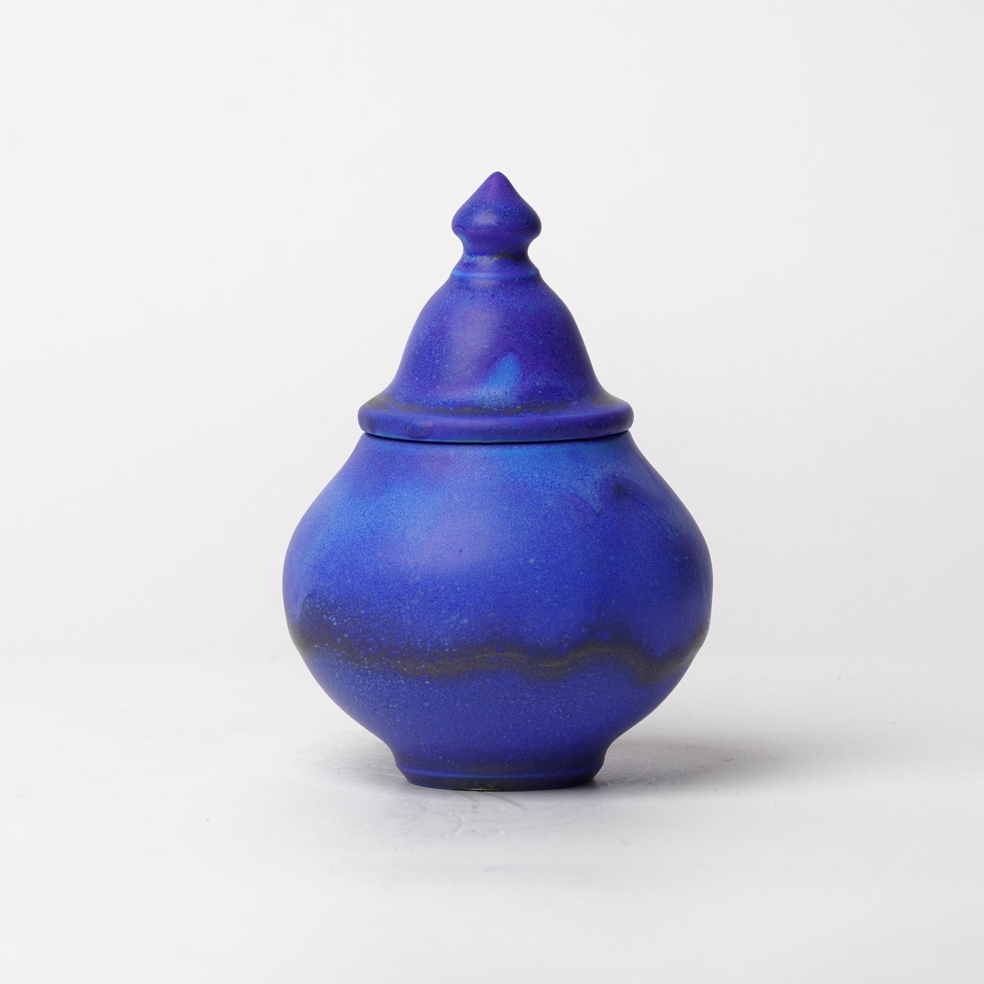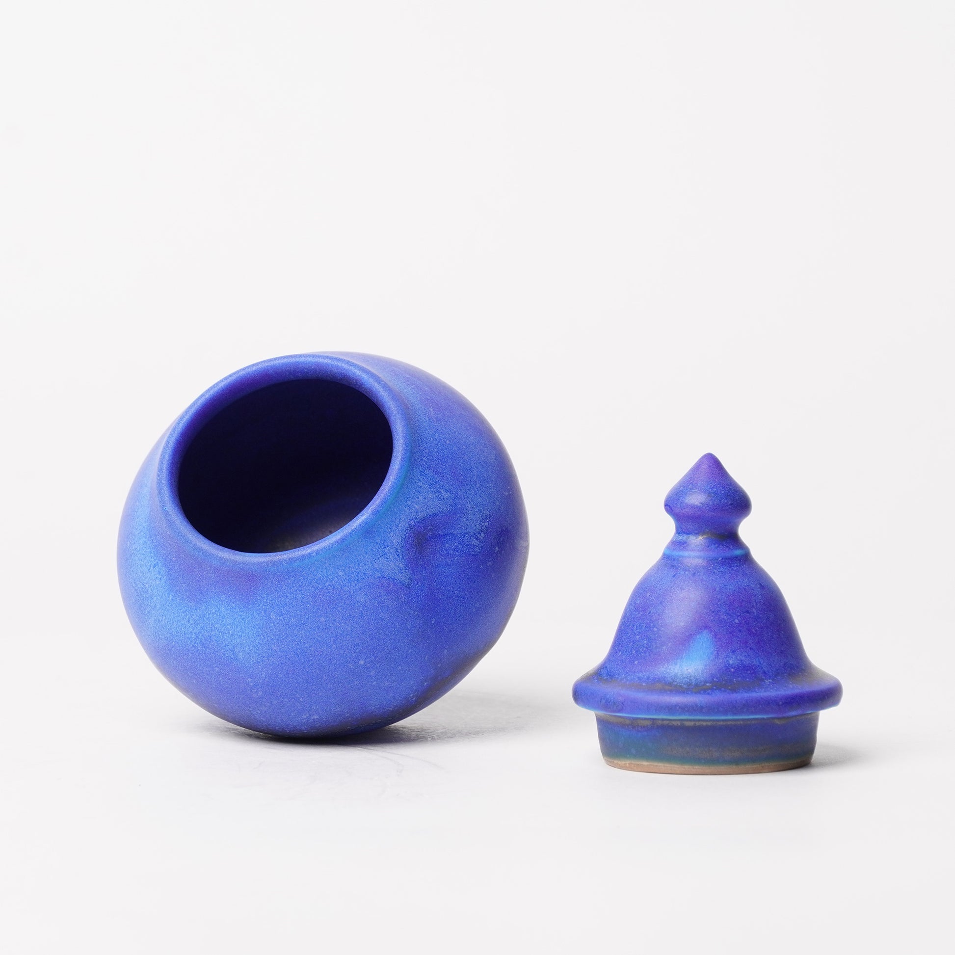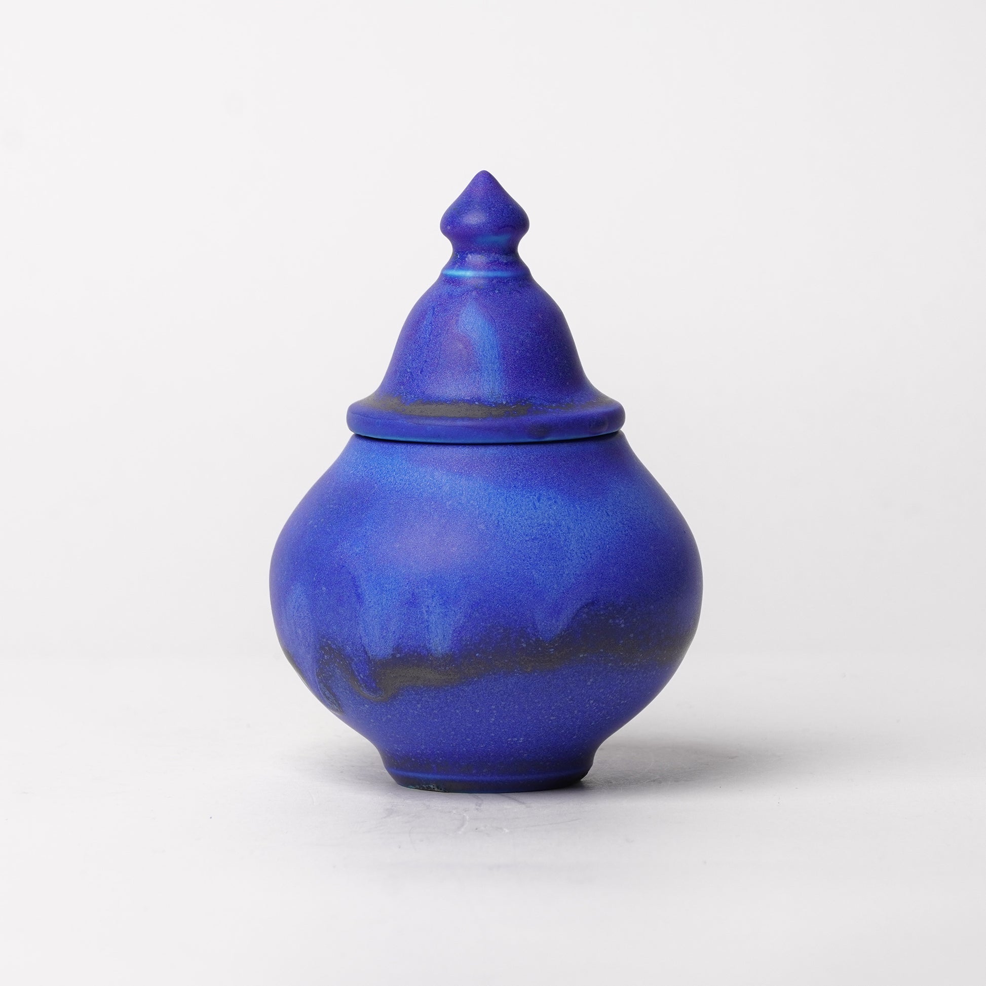 Nobuyuki Hagiwara makes pottery with only blue glaze. Though it is blue, they have different faces and expressions. Sometimes it looks like the deep sea, and sometimes it looks like a sky in winter. He uses wheel thrown technique and electric kiln for firing. Their shape is modern and artistic.
