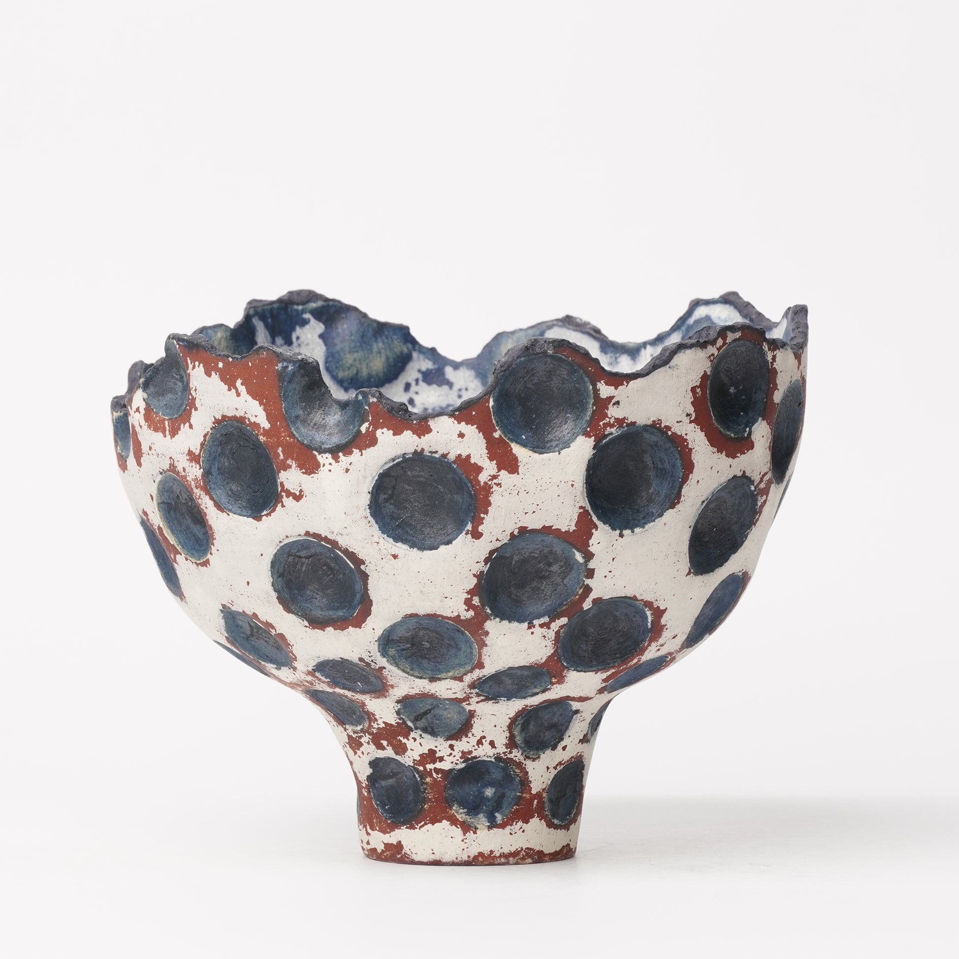 Located in a beautiful island of Okinawa, Nobuko picks up corals from the shore, crashes them, and uses it as one of the ingredients for a glaze to have distinctive texture. Her style of pottery changes constantly introducing new designs. Texture of her pieces are rough and organic.