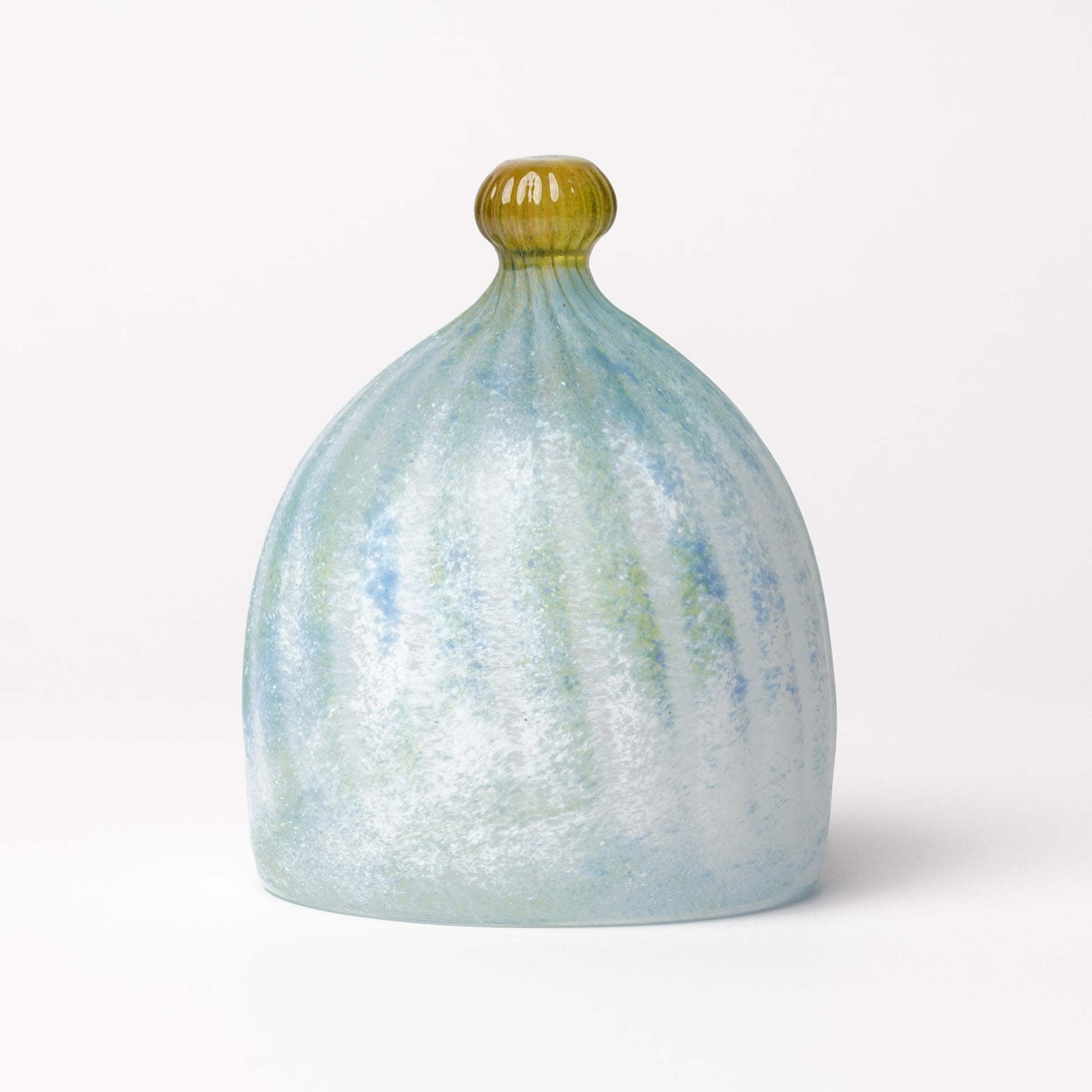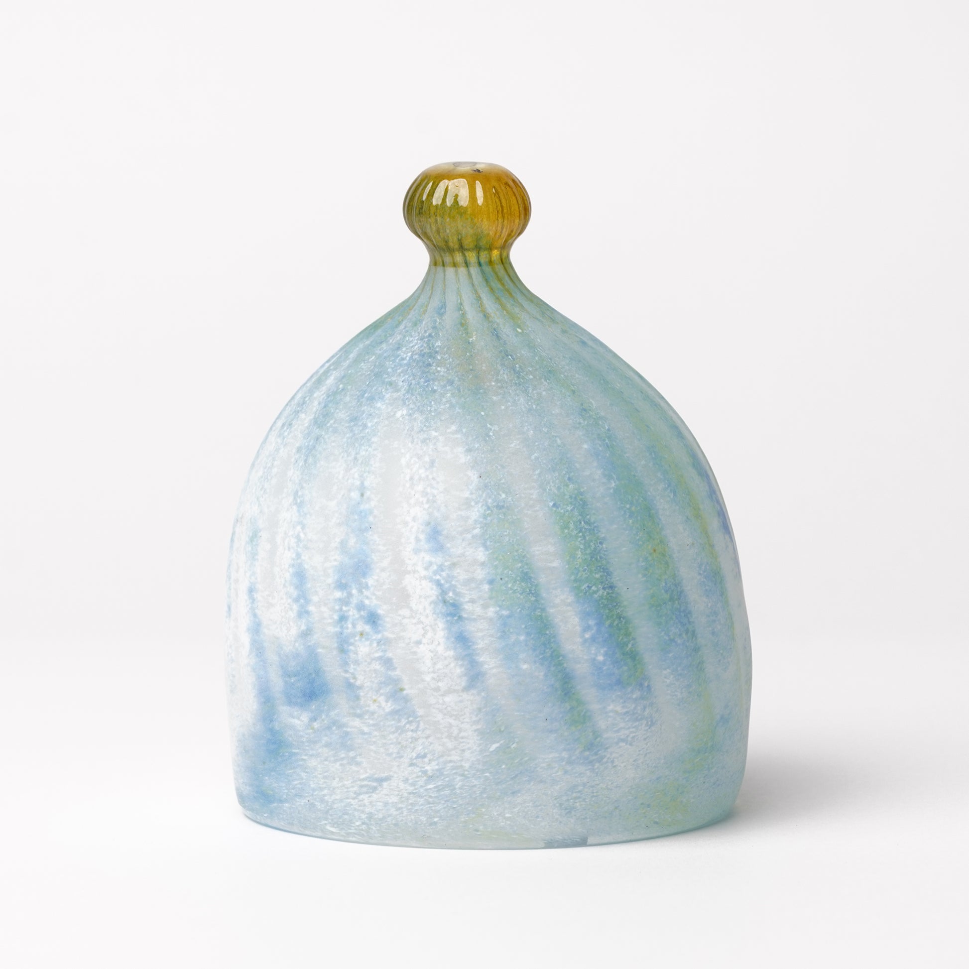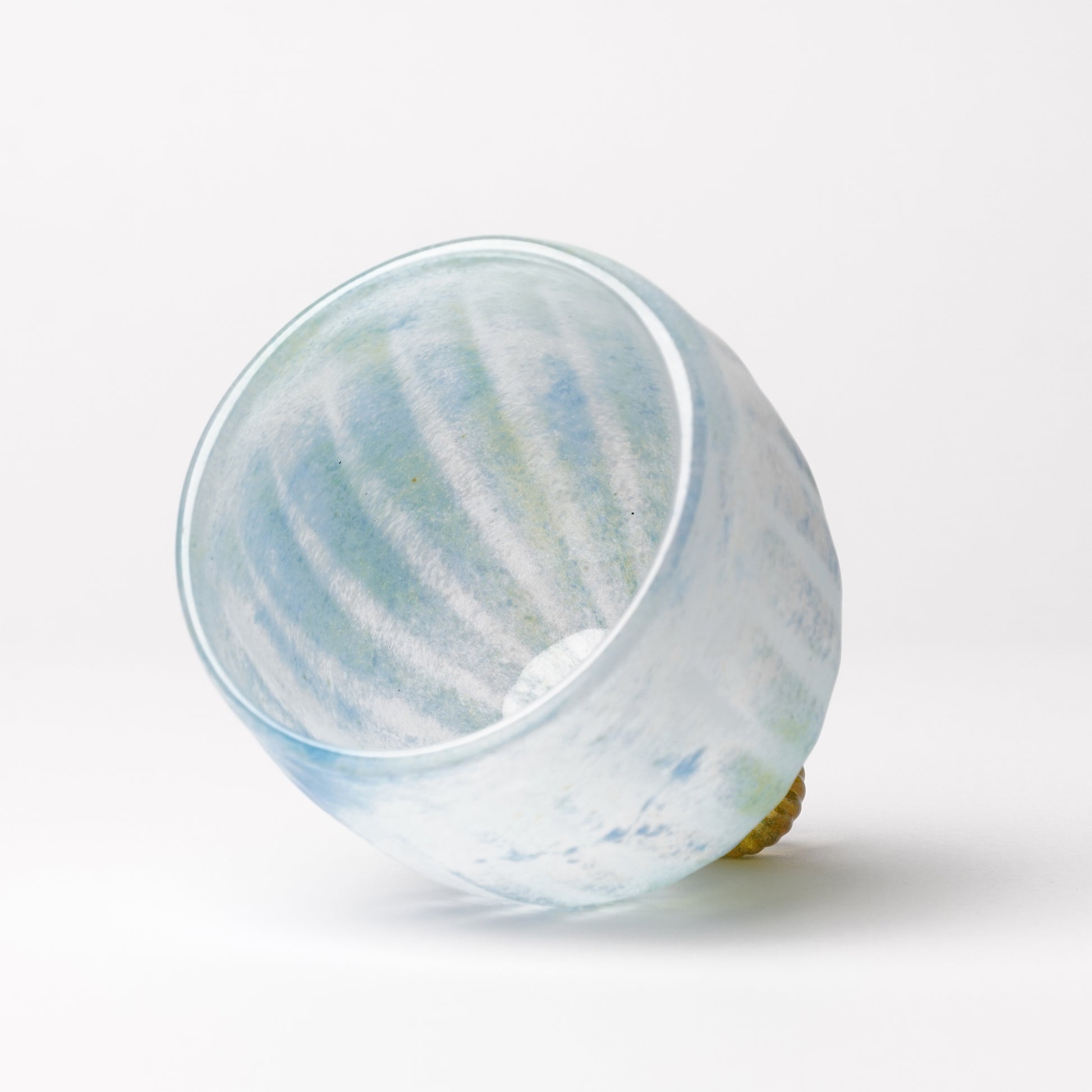 Nomichi Hashimura is a glass artist in Manazuru, Kanagawa where she and her husband Daisaku make beautiful glass pieces. Her pieces are handblown by Daisaku, then she decorates with colored glass powder. Each piece is uniquely decorated and one of the kind.