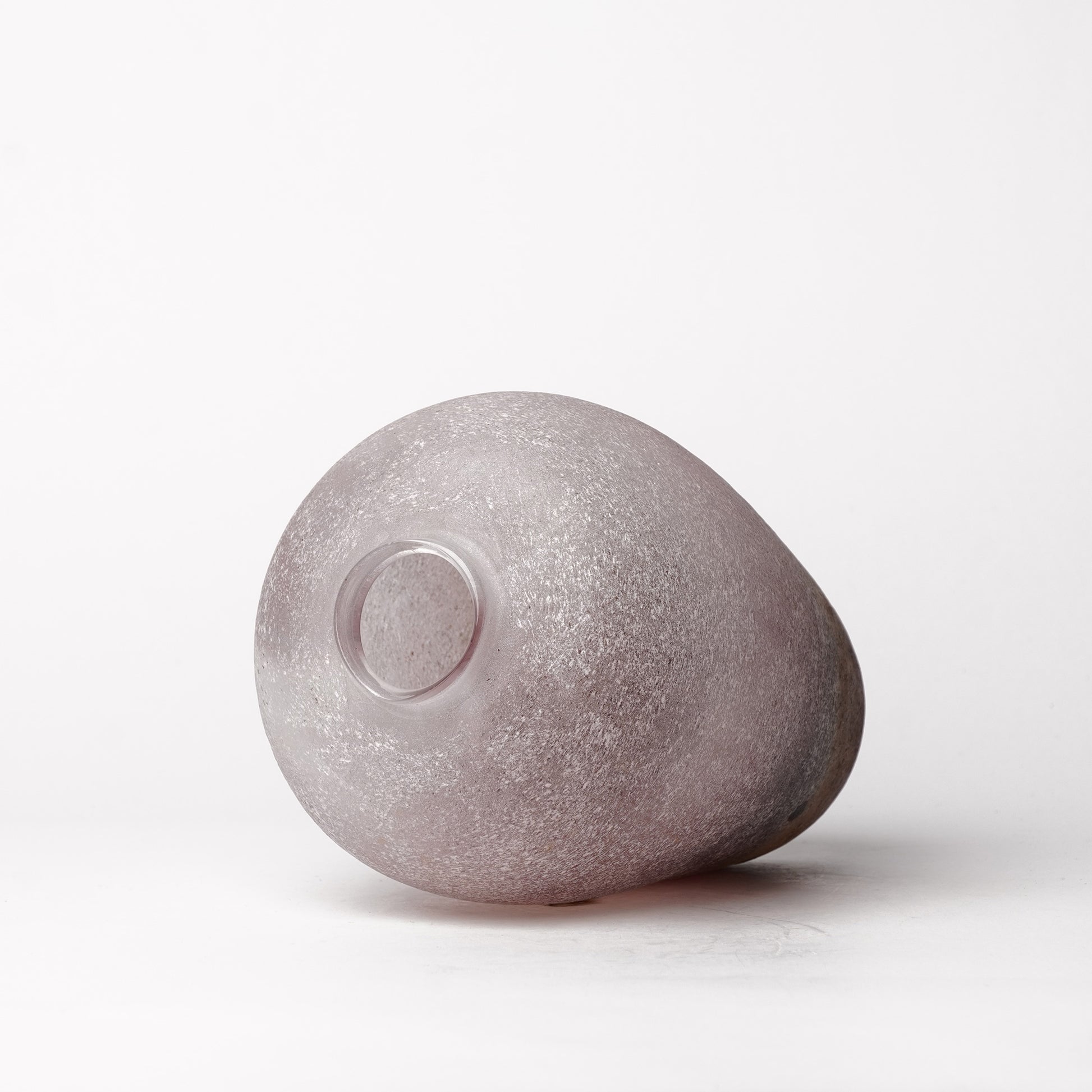 Aki Sakaida is a renowned glass artist based in Akita, in northern Japan. She specializes in hand-blown glass, crafting distinctive and mesmerizing pieces through a meticulous process that combines traditional and innovative techniques. Sakaida enhances the natural beauty of her creations by sanding the glass surface, giving each piece a unique texture and character, and then burning wax on top, which lends a captivating, layered finish. Her work is admired for its depth, elegance, and the delicate balance it strikes between art and craftsmanship, capturing a harmonious blend of raw form and refined detail.