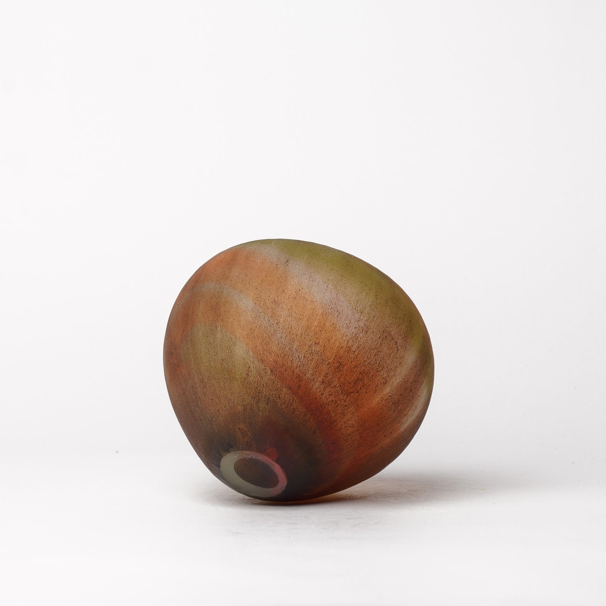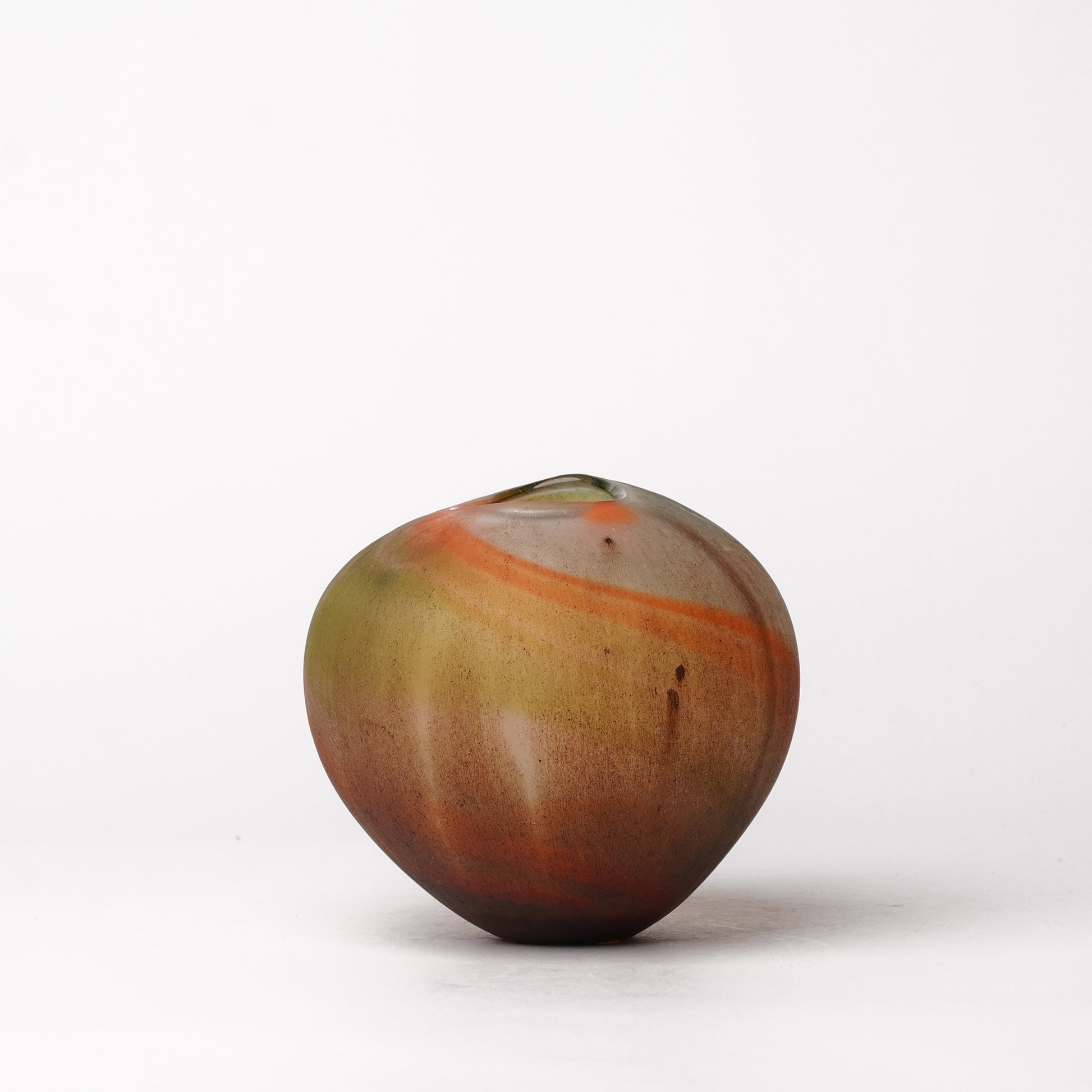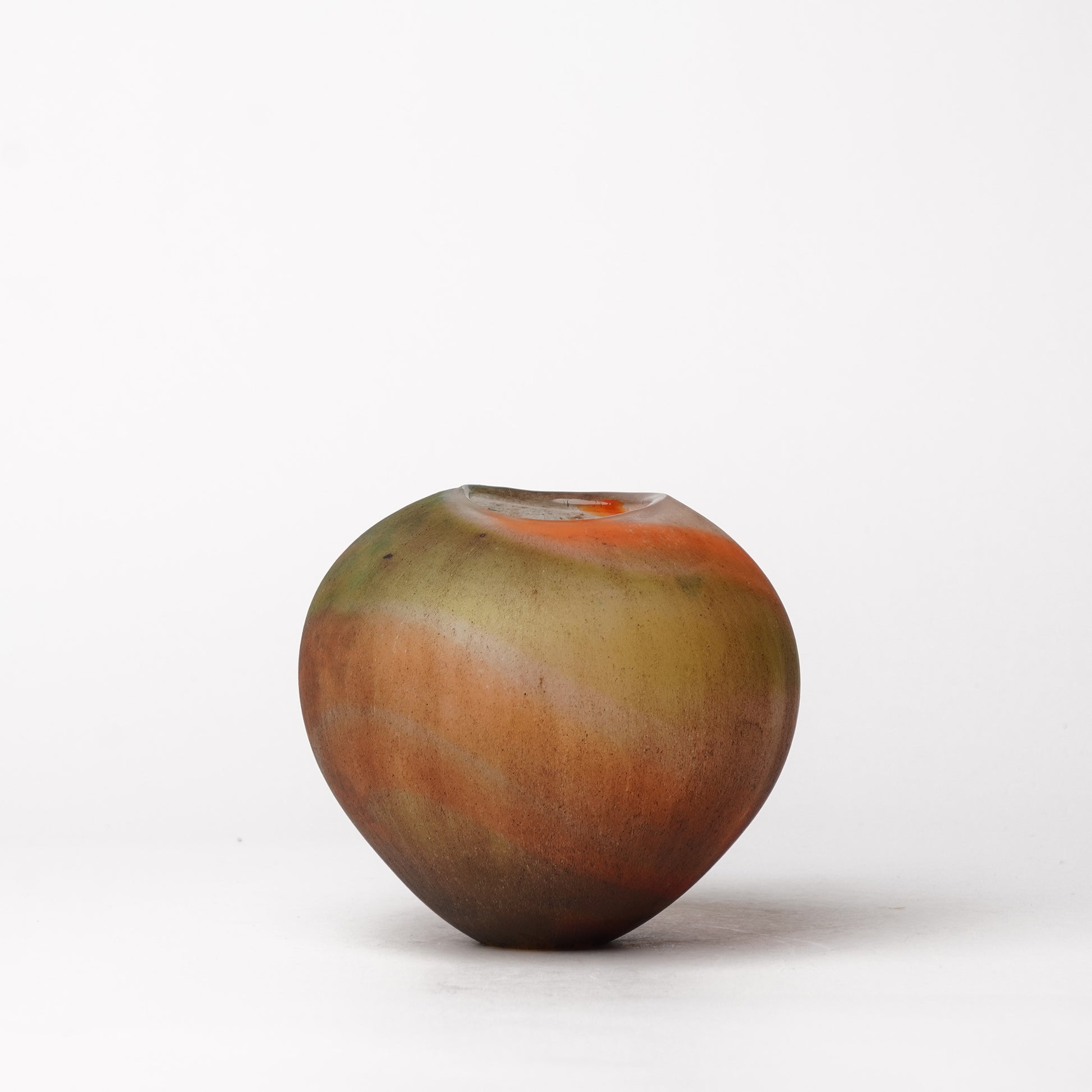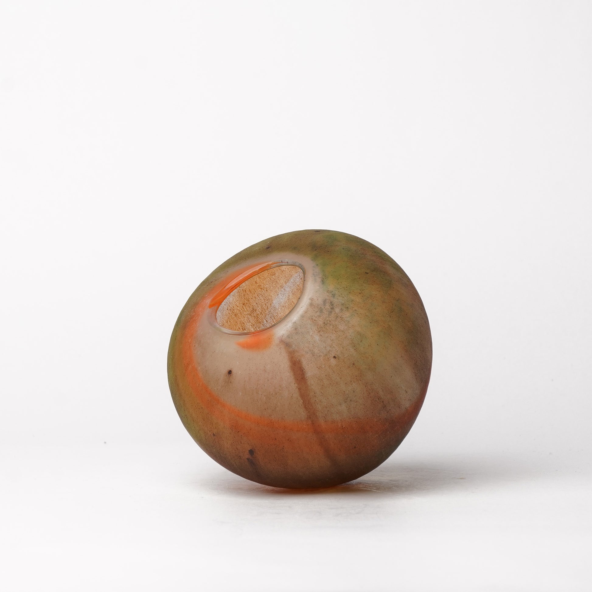 Aki Sakaida is a renowned glass artist based in Akita, in northern Japan. She specializes in hand-blown glass, crafting distinctive and mesmerizing pieces through a meticulous process that combines traditional and innovative techniques. Sakaida enhances the natural beauty of her creations by sanding the glass surface, giving each piece a unique texture and character, and then burning wax on top, which lends a captivating, layered finish. Her work is admired for its depth, elegance, and the delicate balance it strikes between art and craftsmanship, capturing a harmonious blend of raw form and refined detail.