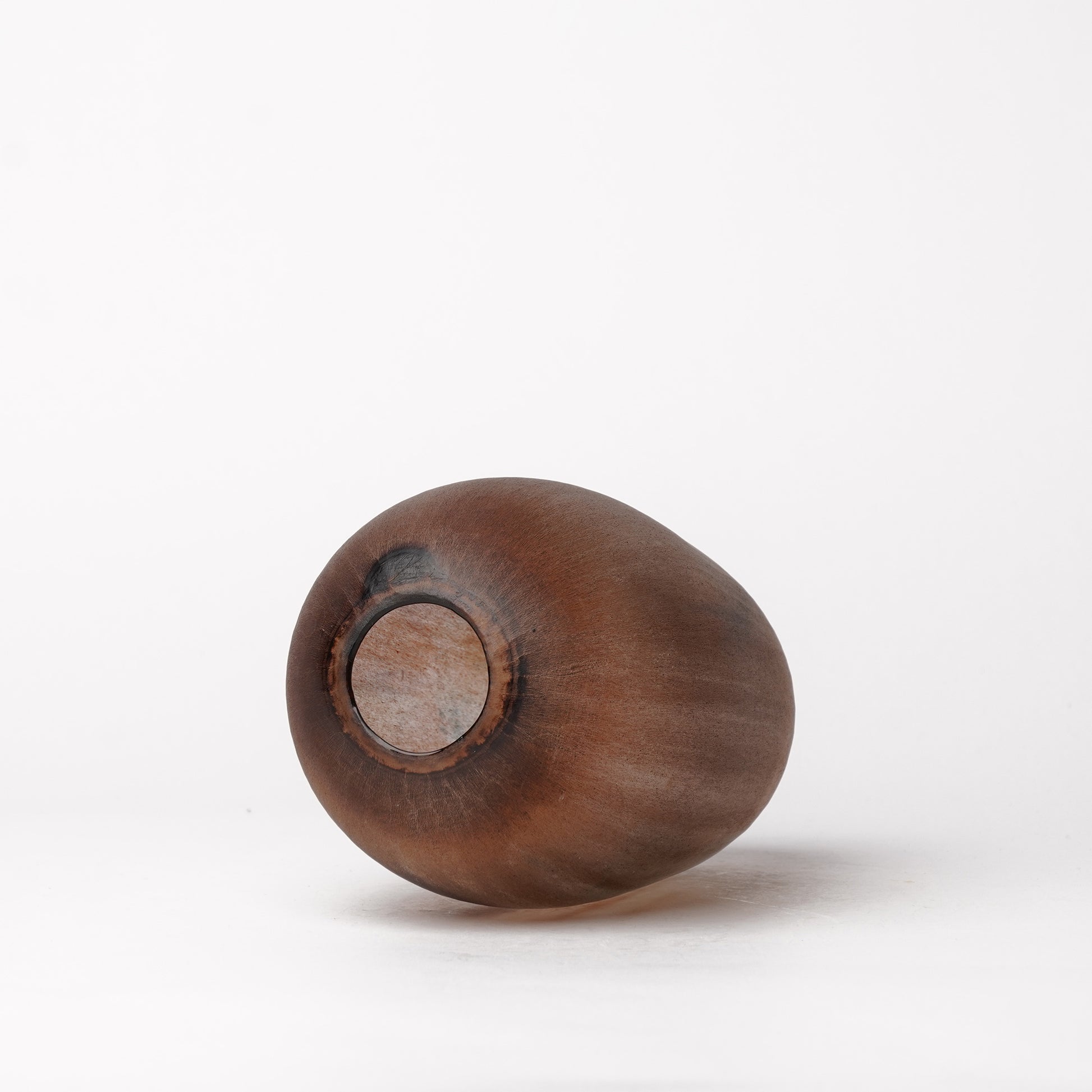 Aki Sakaida is a renowned glass artist based in Akita, in northern Japan. She specializes in hand-blown glass, crafting distinctive and mesmerizing pieces through a meticulous process that combines traditional and innovative techniques. Sakaida enhances the natural beauty of her creations by sanding the glass surface, giving each piece a unique texture and character, and then burning wax on top, which lends a captivating, layered finish. Her work is admired for its depth, elegance, and the delicate balance it strikes between art and craftsmanship, capturing a harmonious blend of raw form and refined detail.