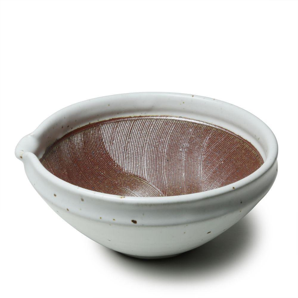 Yamatada ceramique focuses on making Suribachi mortar for generations. Their suribachi is sleek and beautifully shaped using wheel thrown techniques. Their distinctive waves inside mortar is innovative both for the design and for its utility.